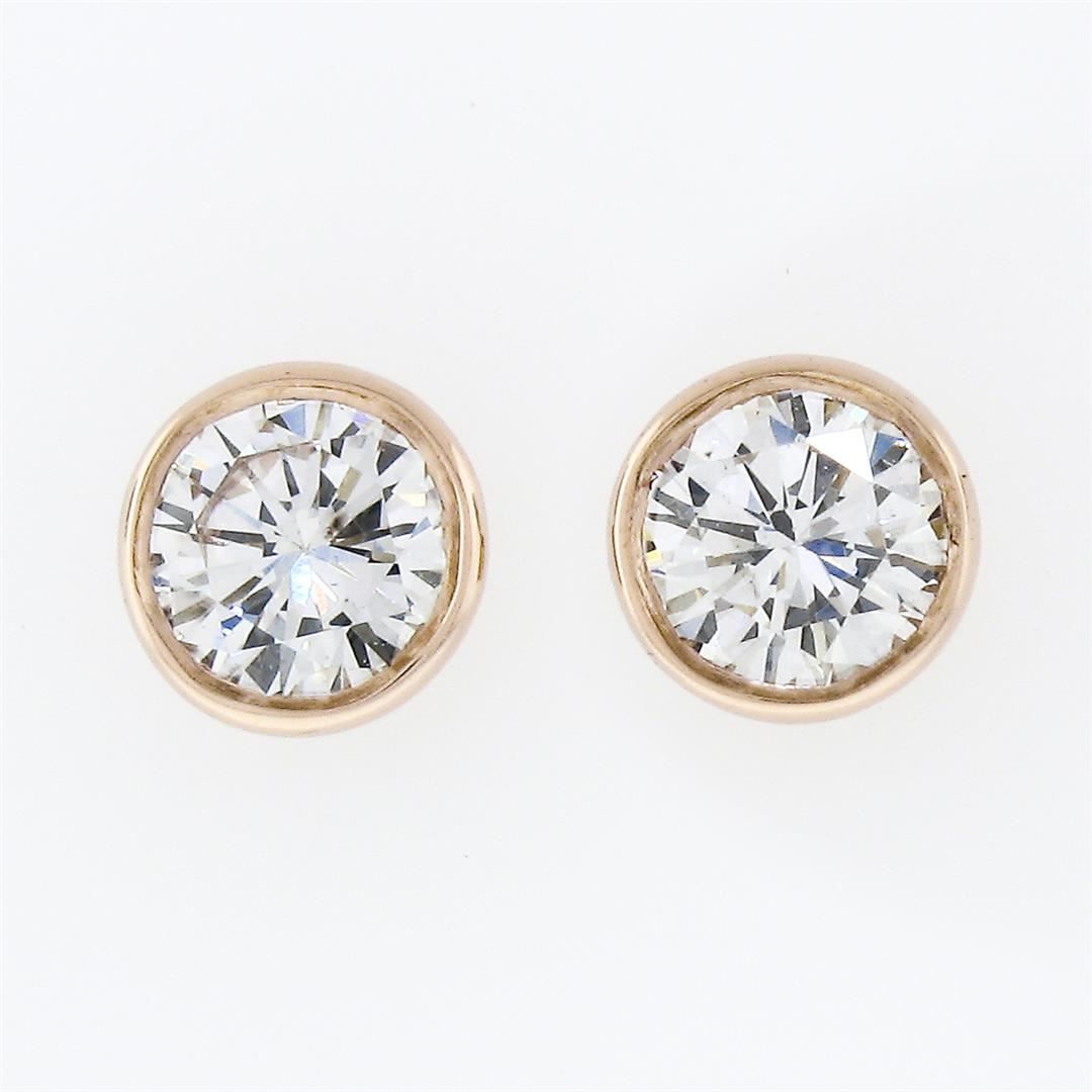 A new solid 14k rose gold stud earrings, with 2 round brilliant cut natural diamonds (F/G- VS1/VS2; 0.42ctw). The earrings measure approximately 4.45mm in diameter and weigh a total of 0.71 grams.