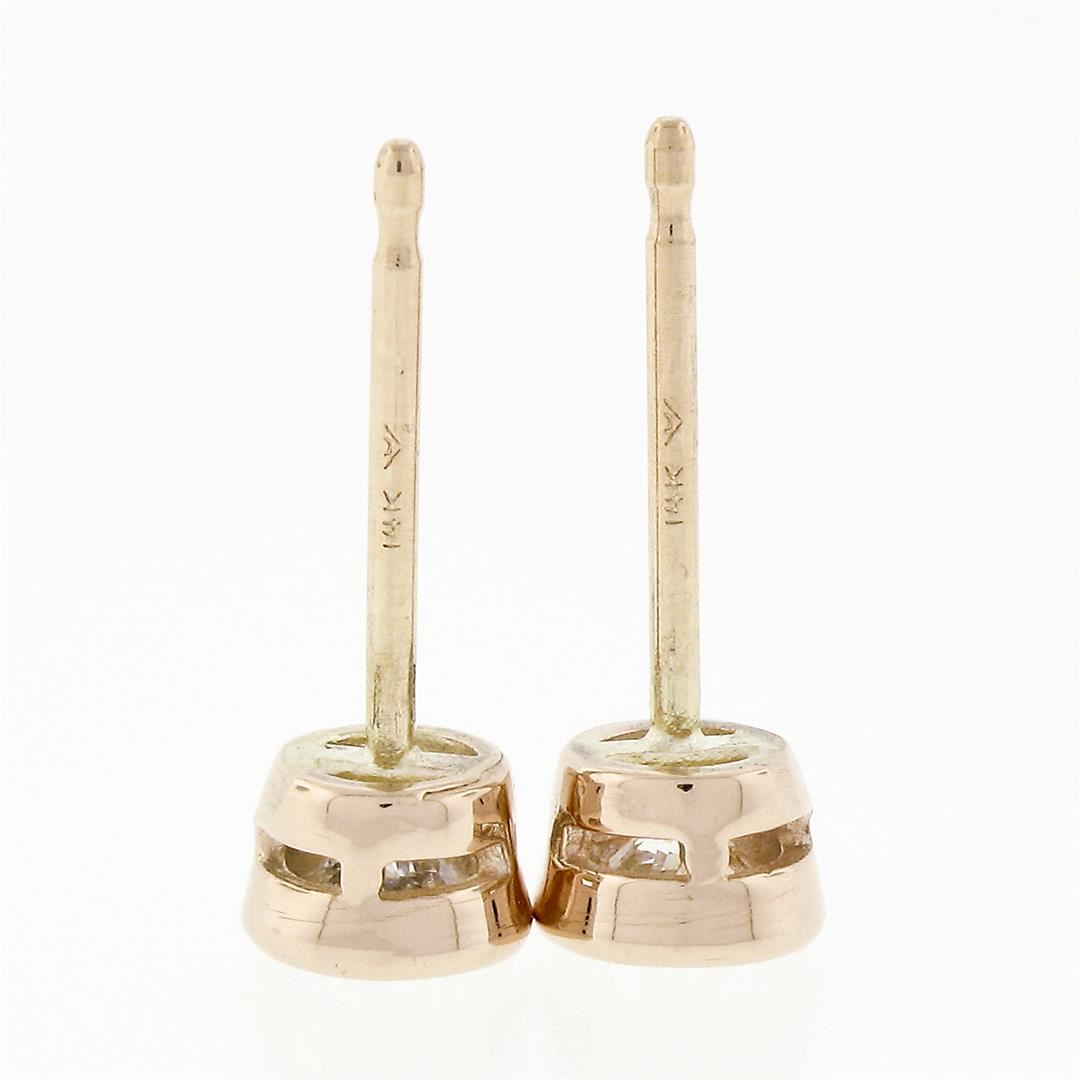 A new solid 14k rose gold stud earrings, with 2 round brilliant cut natural diamonds (F/G- VS1/VS2; 0.42ctw). The earrings measure approximately 4.45mm in diameter and weigh a total of 0.71 grams.