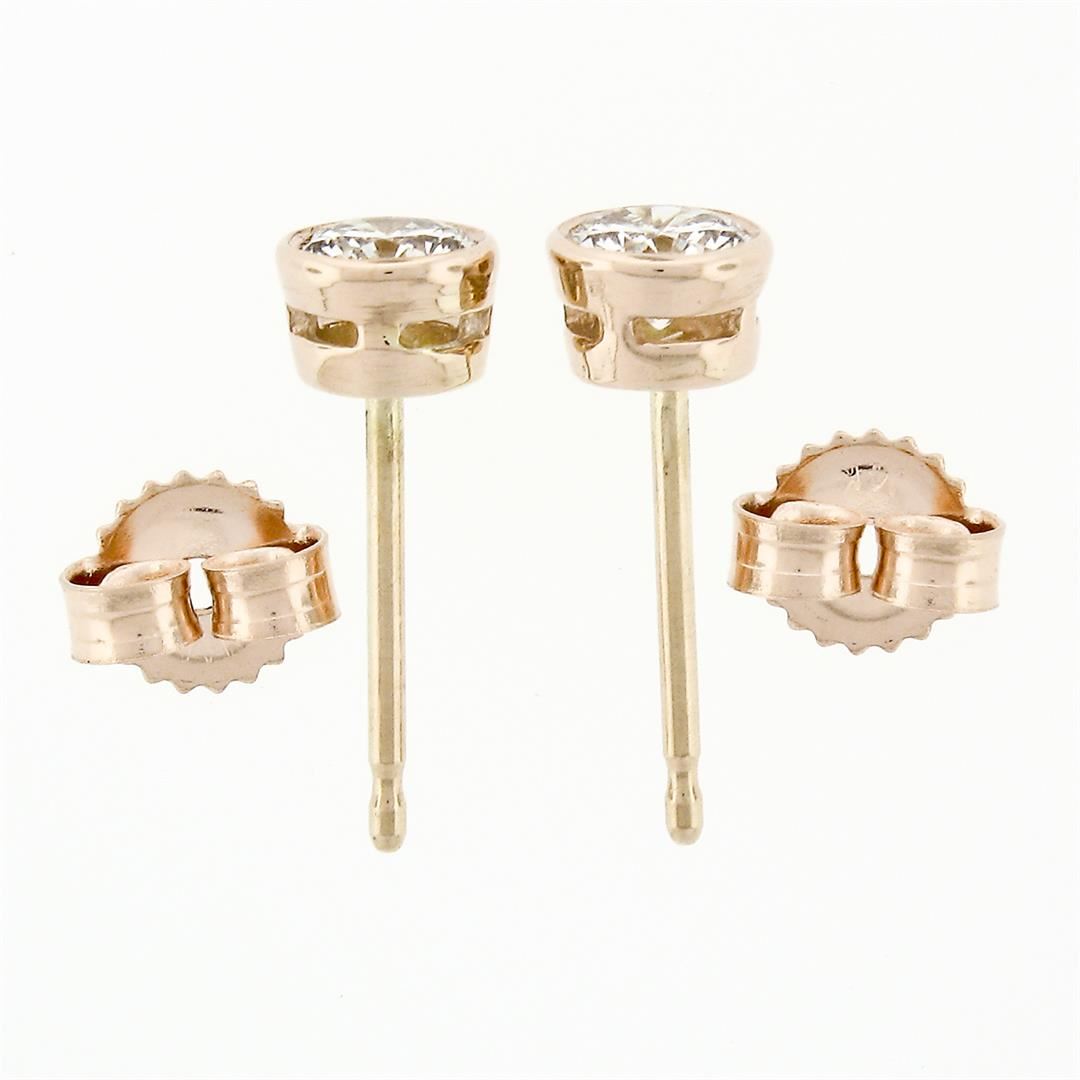 A new solid 14k rose gold stud earrings, with 2 round brilliant cut natural diamonds (F/G- VS1/VS2; 0.42ctw). The earrings measure approximately 4.45mm in diameter and weigh a total of 0.71 grams.
