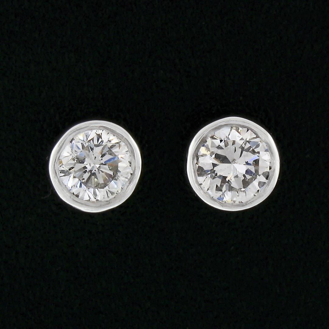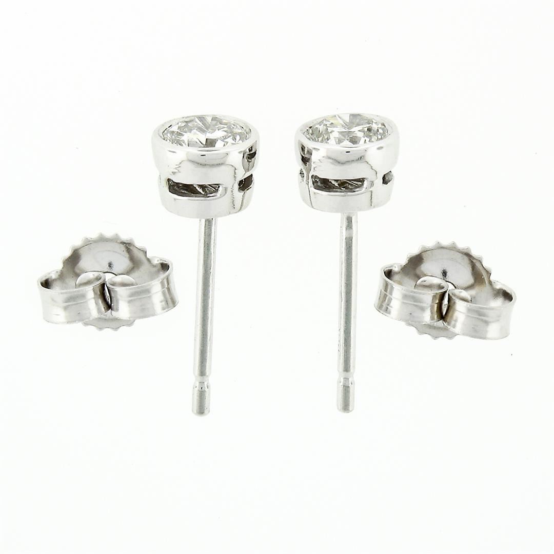 A new solid 14k white gold stud earrings, with 2 round brillaint cut natural diamonds (F/G- VS1/VS2; 0.42ctw). The earrings measure approximately 4.45mm in diameter and weigh a total of 0.78 grams.