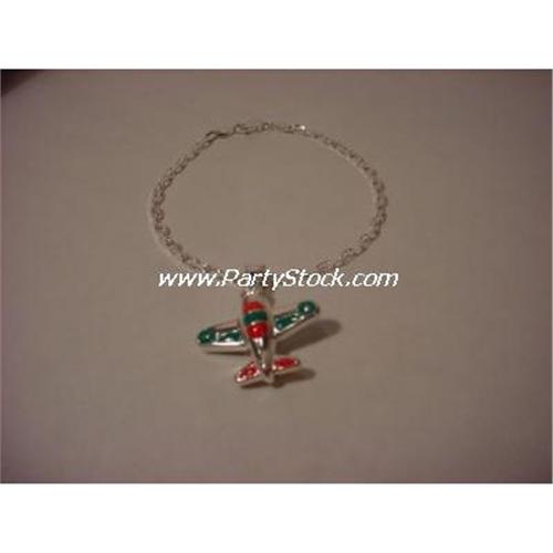 Solid Sterling Silver 7.5 Inch Italian Diamond Cut Bracelet with Solid Sterling Silver and Enamel Airplane Charm (S1551CH6082)