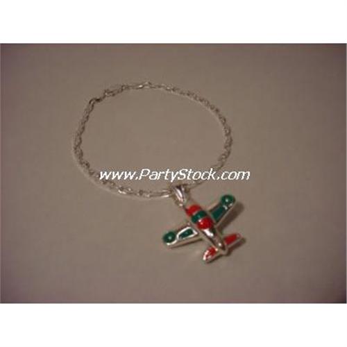 Solid Sterling Silver 7.5 Inch Italian Diamond Cut Bracelet with Solid Sterling Silver and Enamel Airplane Charm (S1551CH6082)