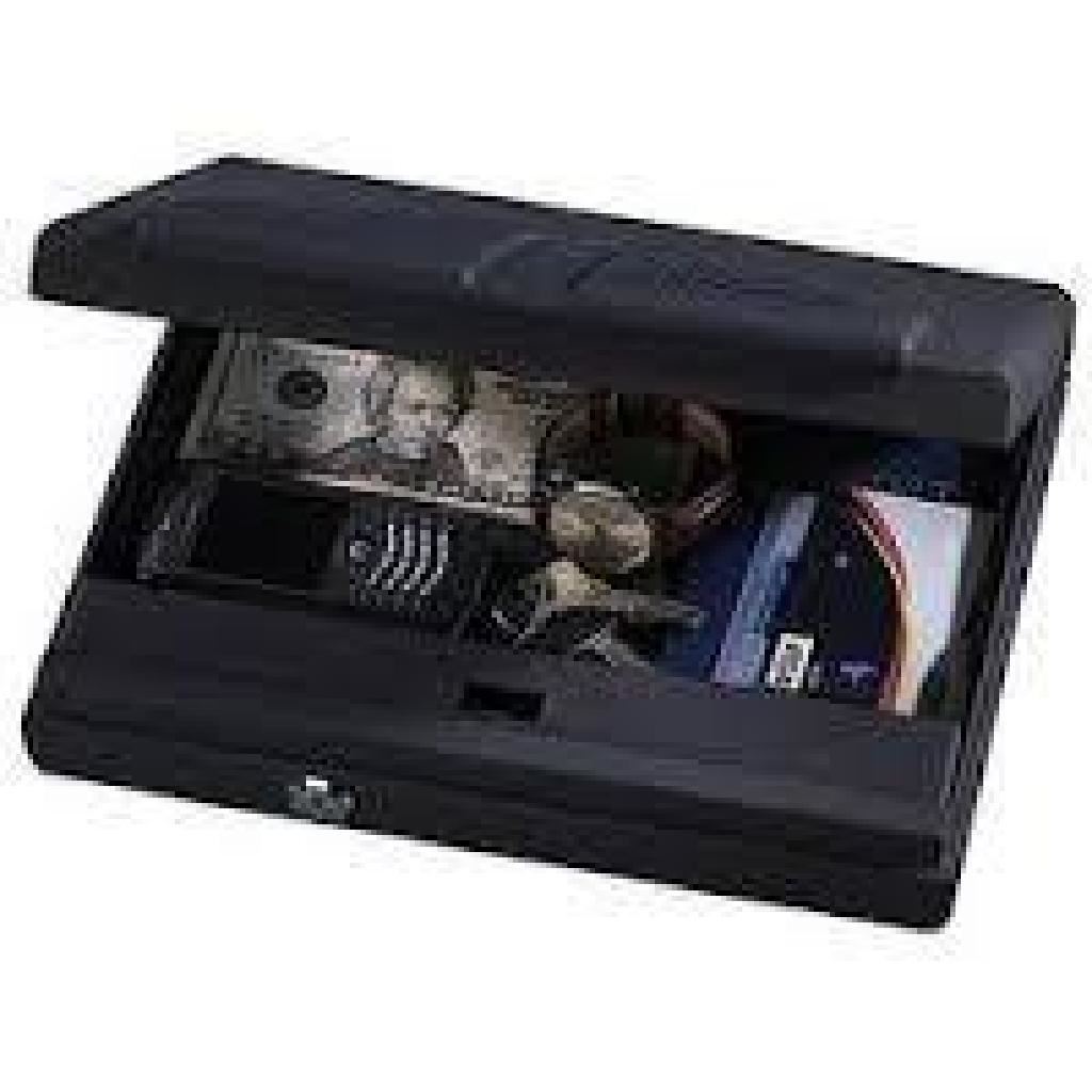 Specifications Type:Security Safe Color:Black Dimensions:11" W x 8.25" D x 2.38" H Entry:Key Lock Type:Biometric Finish:Matte Interior:Foam Padded Weight:7 lbs