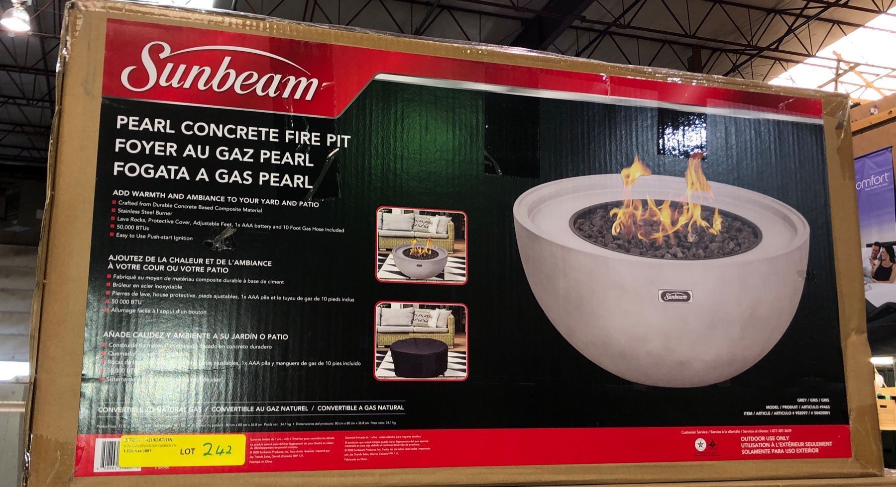NEW Sunbeam - Pearl Concrete Fire Pit - (Convertible to Natural Gas) - 31 1/2in x 31 1/2in x 14 1/2in - 75.1 Lbs