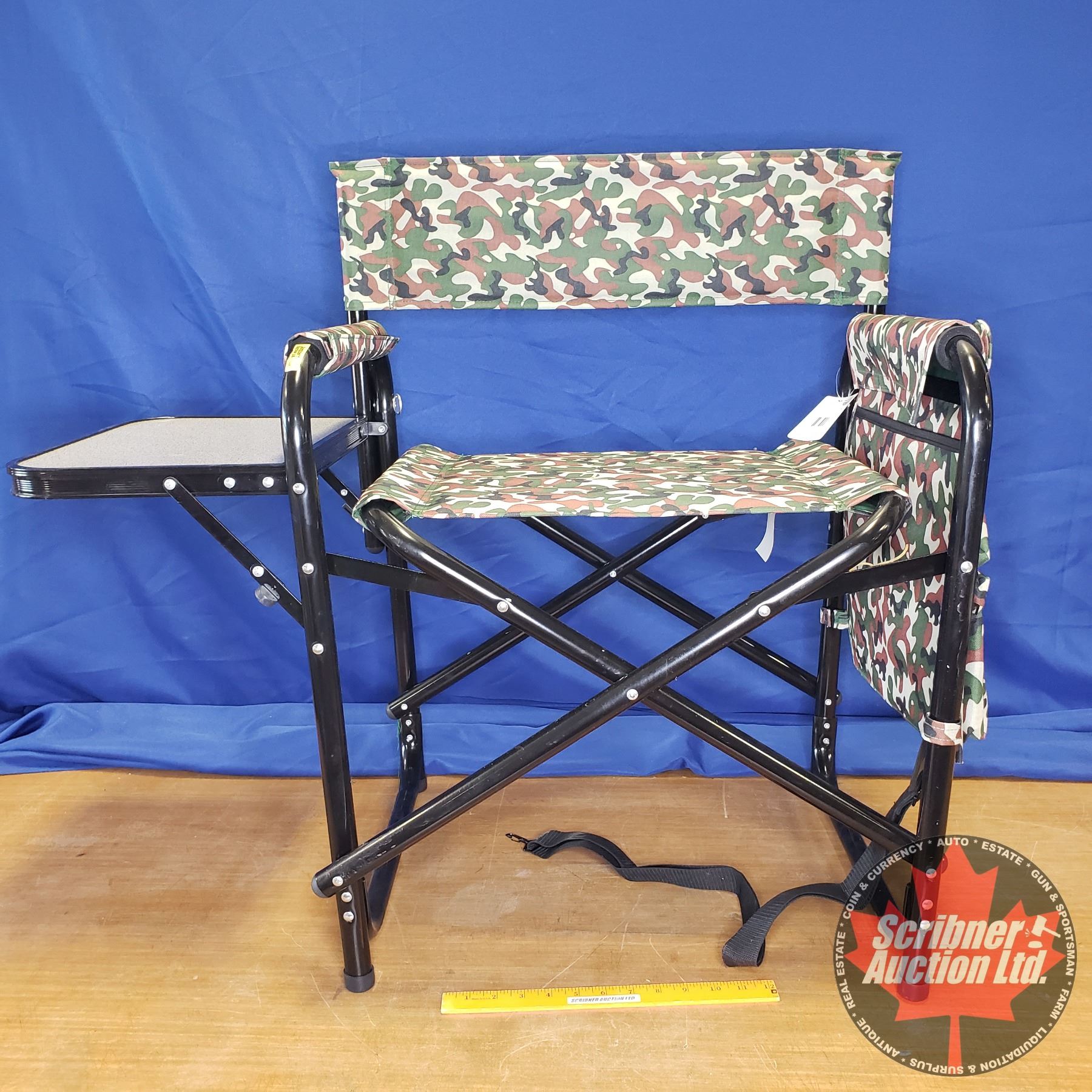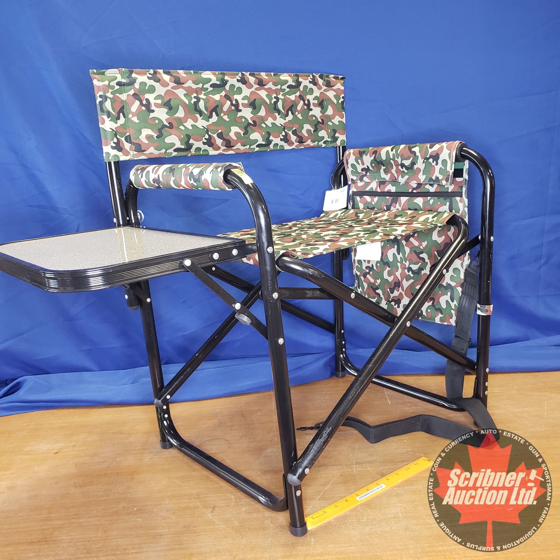 NEW: Super Director Chair Folding w/Side Table & Carry Strap (Lots of Storage Pockets!) (Set Up Measures: 31"H x 36"W x 18"D)