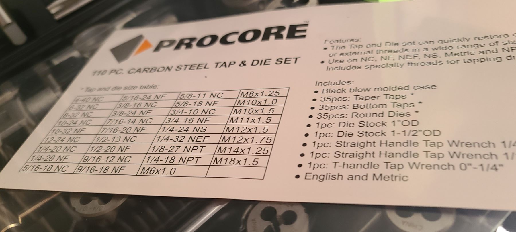 NEW TAP AND DIE SET METRIC & STANDARD