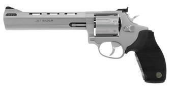 Mfr Items:Taurus Category:REVOLVERS Action:Single/Double Caliber:357 Magnum Barrel Length:6.5" Capacity:7 Hammer Style:Spurred Grips:Black Ribber Sights:Adjustable Weight:40 oz Frame Description:Stainless Frame Size:Compact Cylinder Finish:Stainless Barrel Finish:Stainless OAL:10.75"