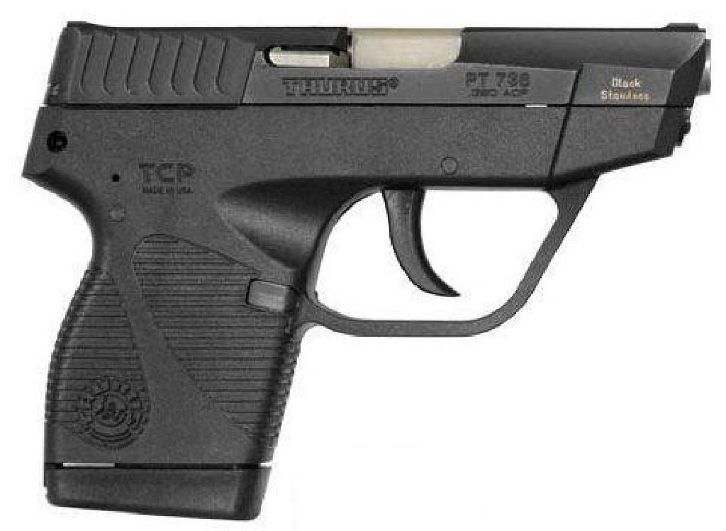 FAMILY:738 TCP Series MODEL:738 TCP TYPE:Semi-Auto Pistol ACTION:Semi-Auto FINISH:Blackened Stainless STOCK/FRAME:Polymer Frame STOCK/GRIPS:Black Polymer CALIBER/GAUGE:380 ACP CAPACITY:6+1 BARREL:3.3"