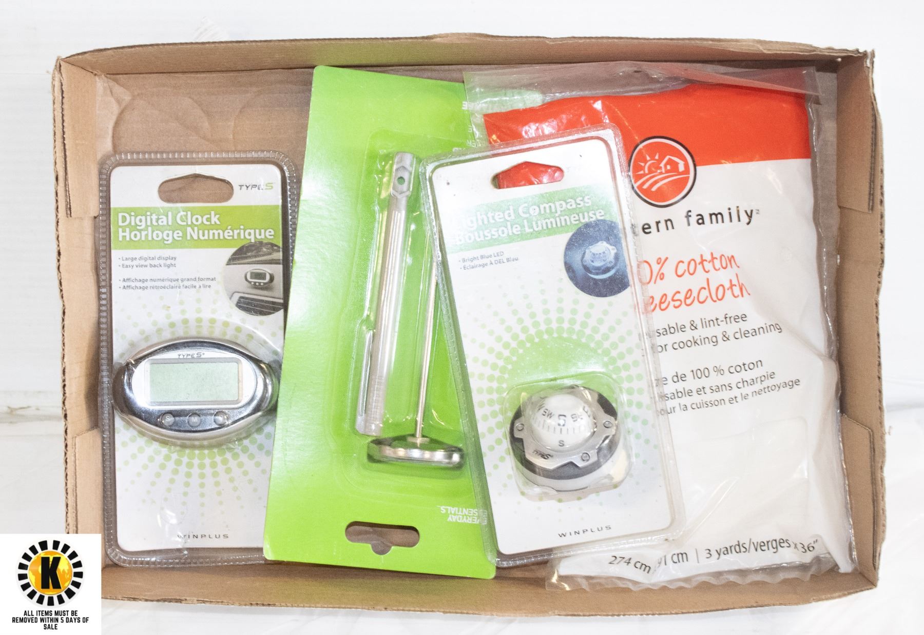 NEW THERMOMETER , COMPASS, CHEESECLOTH ETC