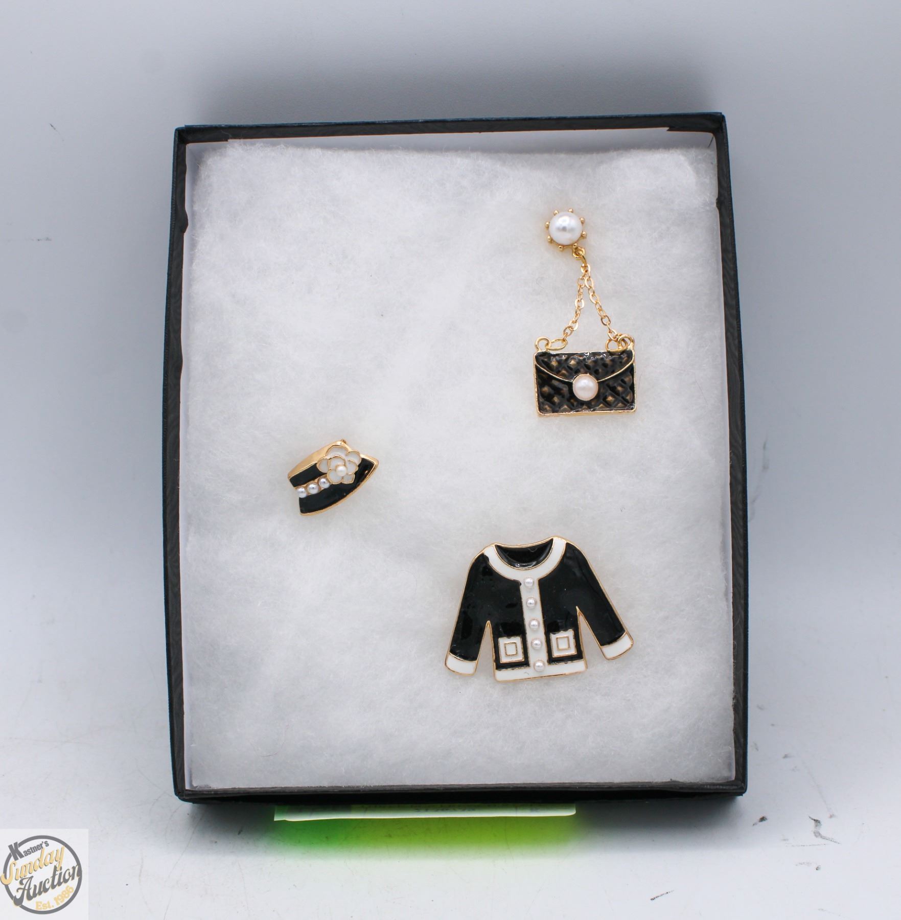NEW THREE PCS FRENCH STYLE BLACK BROOCH