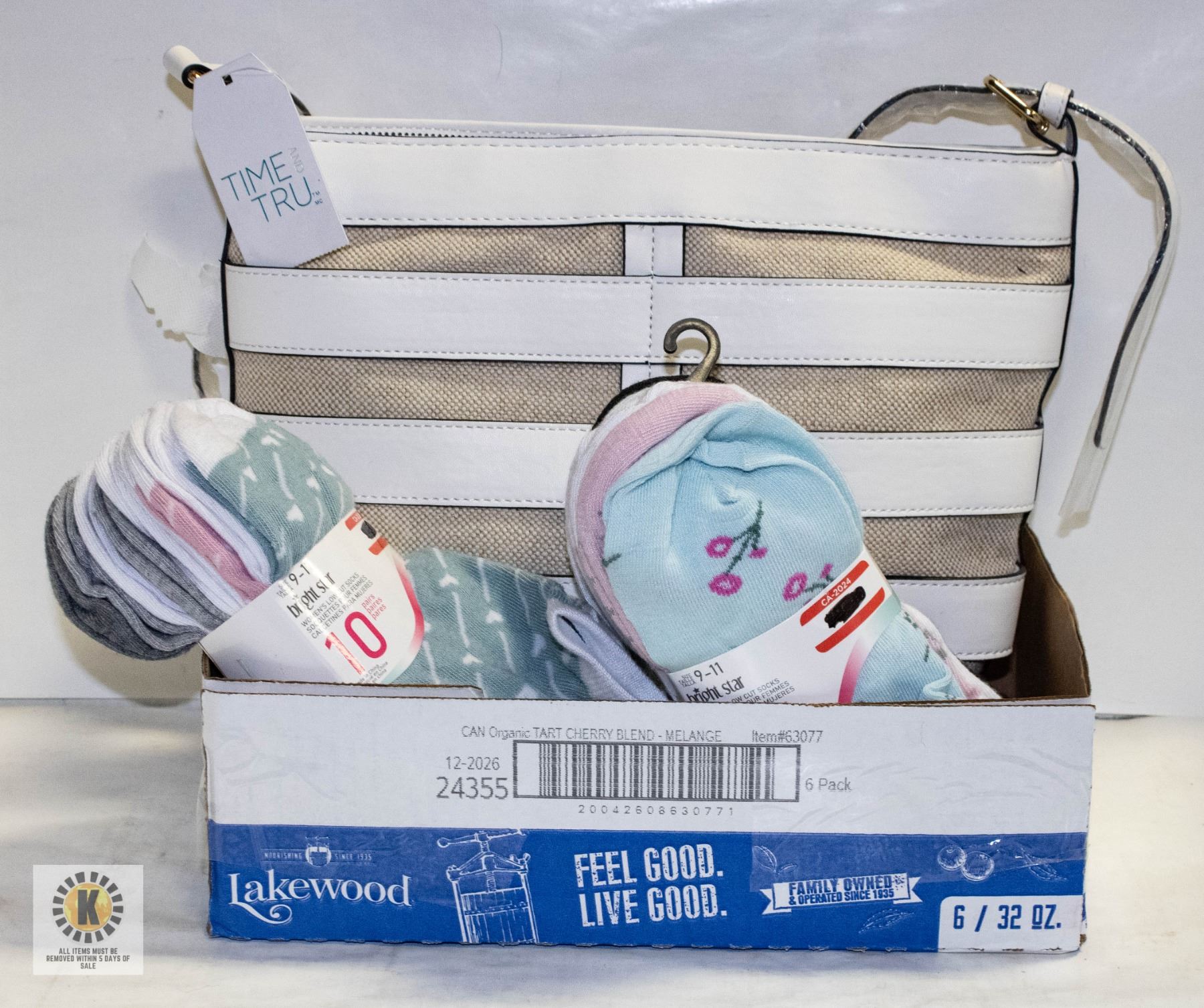 HANDBAG W/20 PAIR NEW ANKLE SOCKS **ALL ITEMS MUST BE REMOVED BY 5PM SATURDAY, APRIL 12TH 2025. ALL REMAINING ITEMS WILL BE SUBJECT TO A $6.00 PER DAY STORAGE CHARGE. ANY ITEMS REMAINING AFTER MONDAY, APRIL 28TH 2025 WILL BE CONSIDERED FORFEITED. NO REFUNDS WILL BE ISSUED FOR FORFEITED ITEMS. TO SCHEDULE A PICK UP APPOINTMENT CLICK HERE