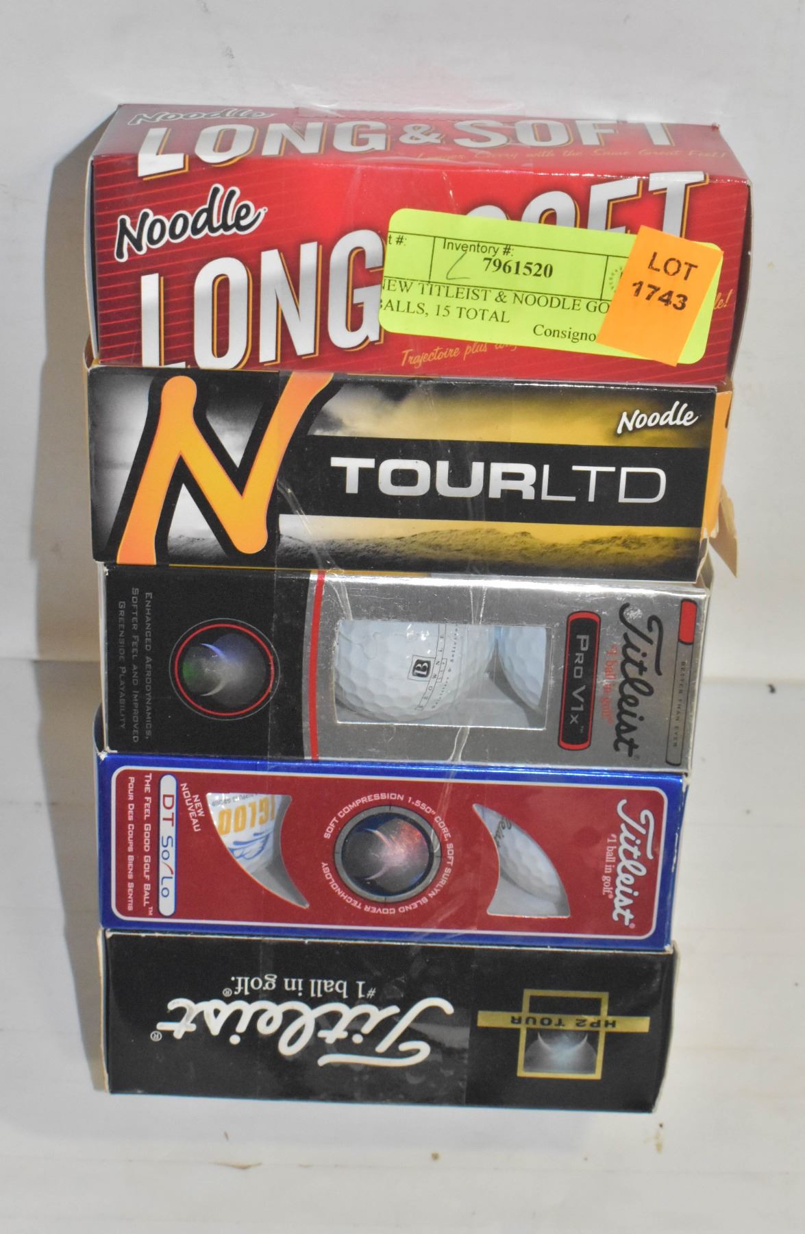 NEW TITLEIST & NOODLE GOLF BALLS, 15 TOTAL