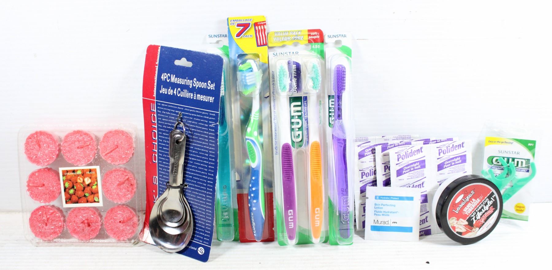 MEASURING SPOONS, POLIDENT, BODY CREAM