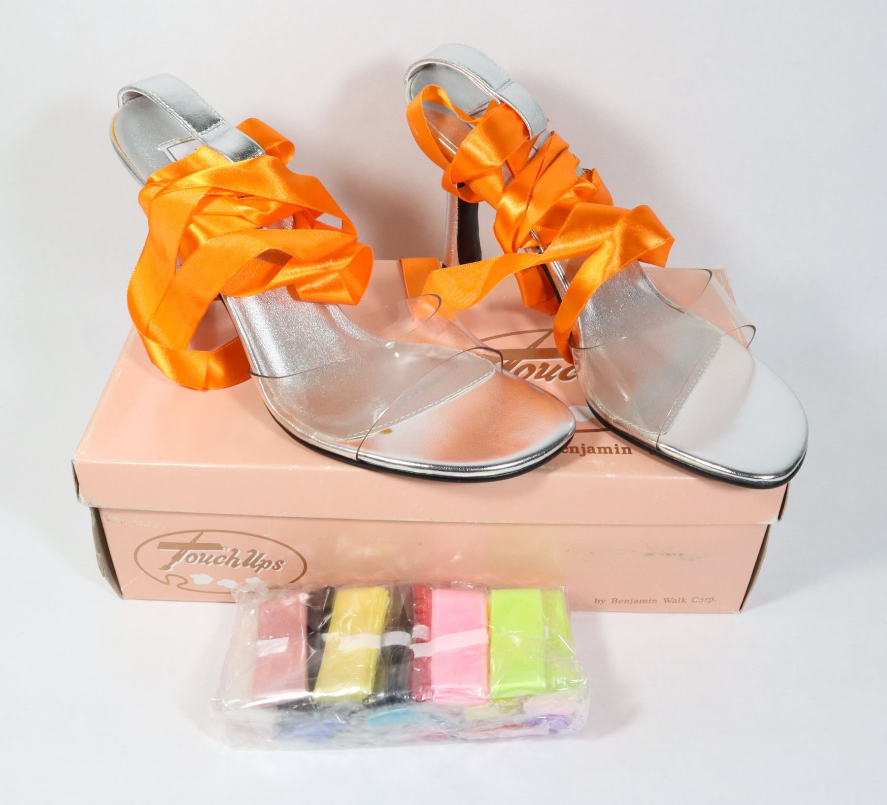 JENNIFER BRIDAL SHOE WITH MULTIPLE RIBBON LACES.