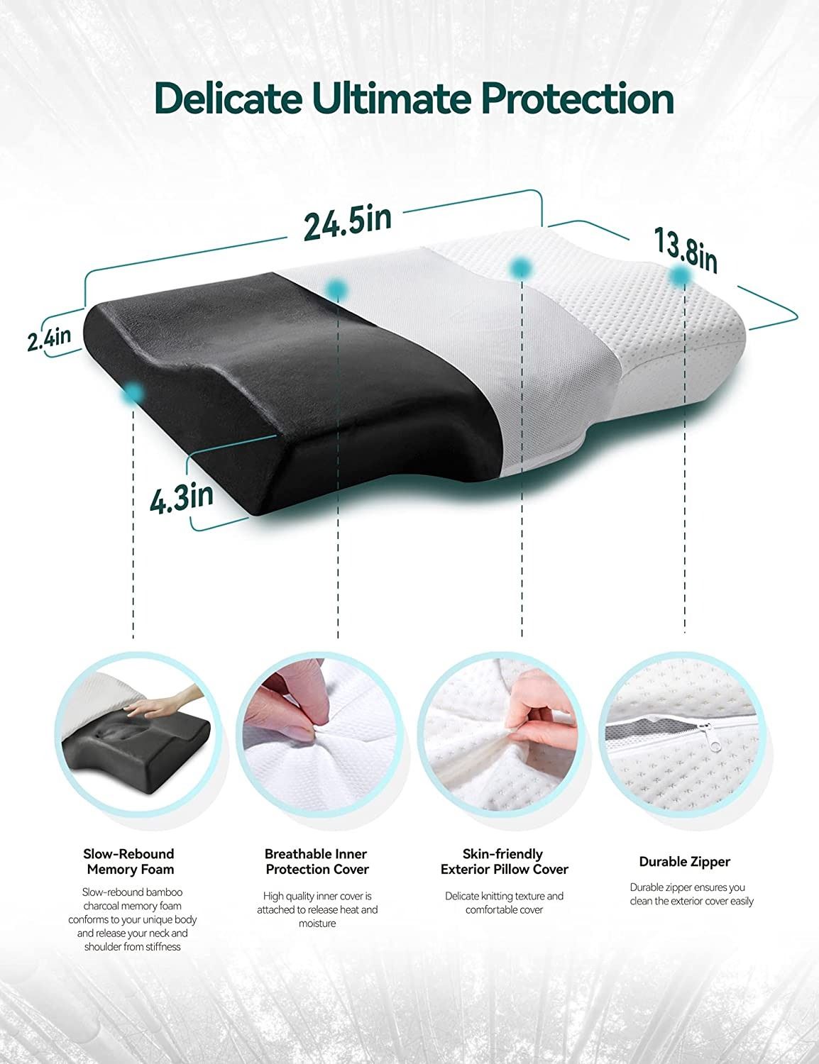 FOAM CERVICAL CARE PILLOW WITH REMOVEABLE COVER AND TRAVEL/STORAGE BAG, AMZ SES