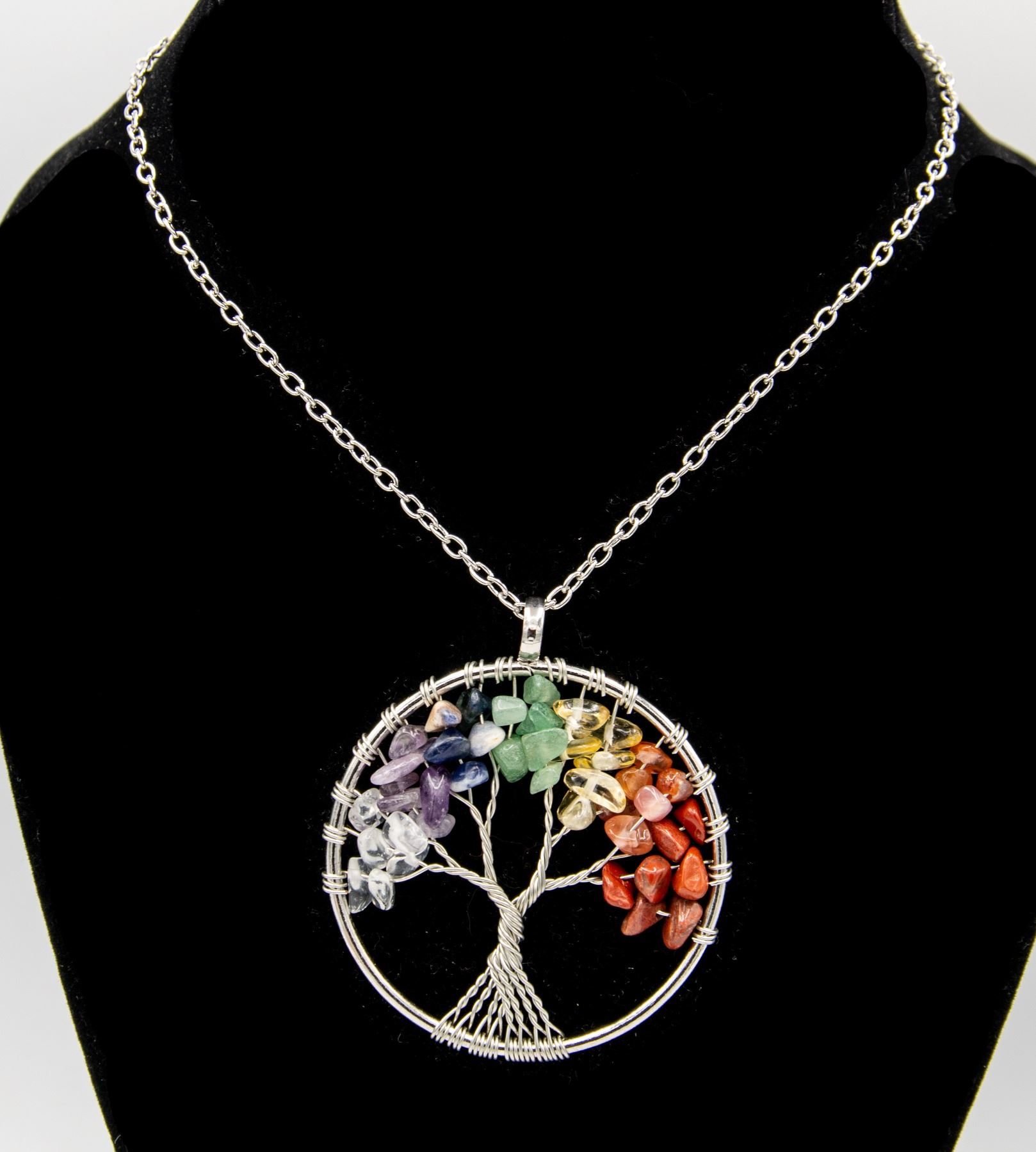 WRAPPED TREE PENDANT ON STAINLESS STEEL CHAIN - 7 TYPES OF HEART CHAKRA GENUINE STONES **ALL ITEMS MUST BE REMOVED BY 5PM SATURDAY, FEBRUARY 4TH 2023.** ALL REMAINING ITEMS WILL BE SUBJECT TO A $6.00 PER DAY STORAGE CHARGE. ANY ITEMS REMAINING AFTER MONDAY, FEBRUARY 20TH, 2023 WILL BE CONSIDERED FORFEITED. NO REFUNDS WILL BE ISSUED FOR FORFEITED ITEMS. TO SCHEDULE A PICK UP APPOINTMENT CLICK HERE