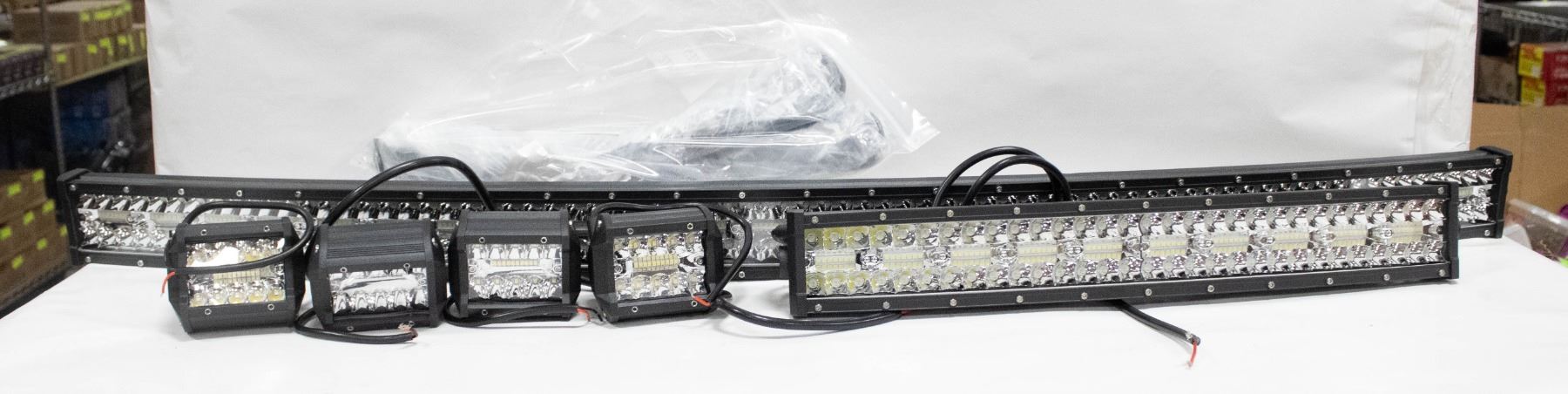 50 INCH CURVED LIGHT BAR, 20 INCH LIGHT BAR, WITH 4 INCH 4 PIECE POD LIGHTS WITH WIRING HARNESSES, AMZ SES **ALL ITEMS MUST BE REMOVED BY 5PM SATURDAY, APRIL 5TH 2025. ALL REMAINING ITEMS WILL BE SUBJECT TO A $6.00 PER DAY STORAGE CHARGE. ANY ITEMS REMAINING AFTER MONDAY, MAY 5TH 2025 WILL BE CONSIDERED FORFEITED. NO REFUNDS WILL BE ISSUED FOR FORFEITED ITEMS. TO SCHEDULE A PICK UP APPOINTMENT CLICK HERE