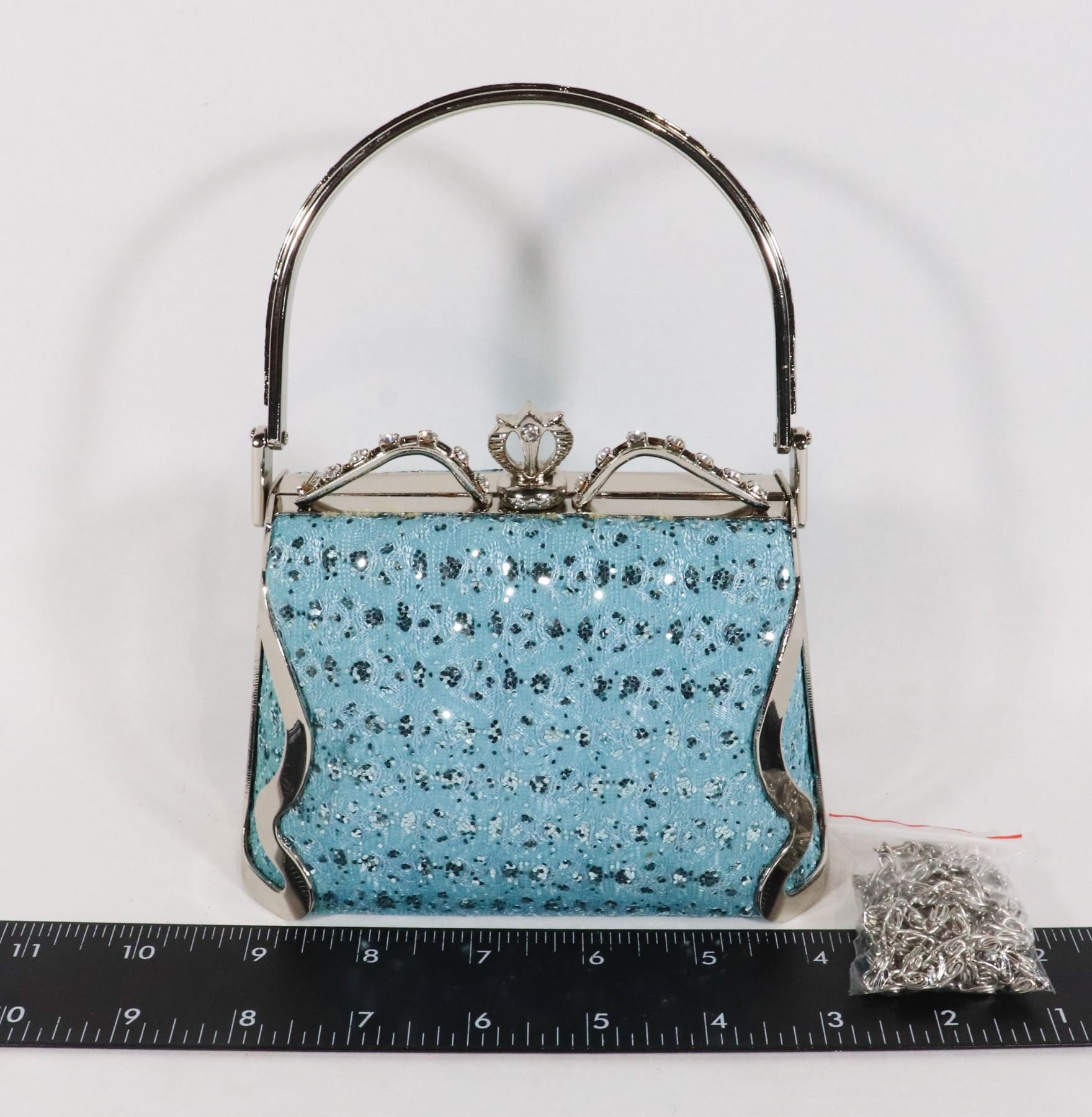 NEW TURQUOISE SPARKLE LACE AND METAL EVENING BAG