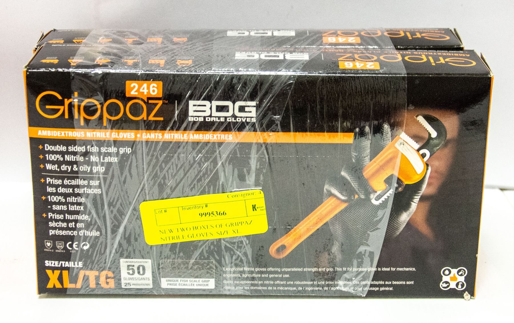 NEW TWO BOXES OF GRIPPAZ NITRILE GLOVES. SIZE XL.