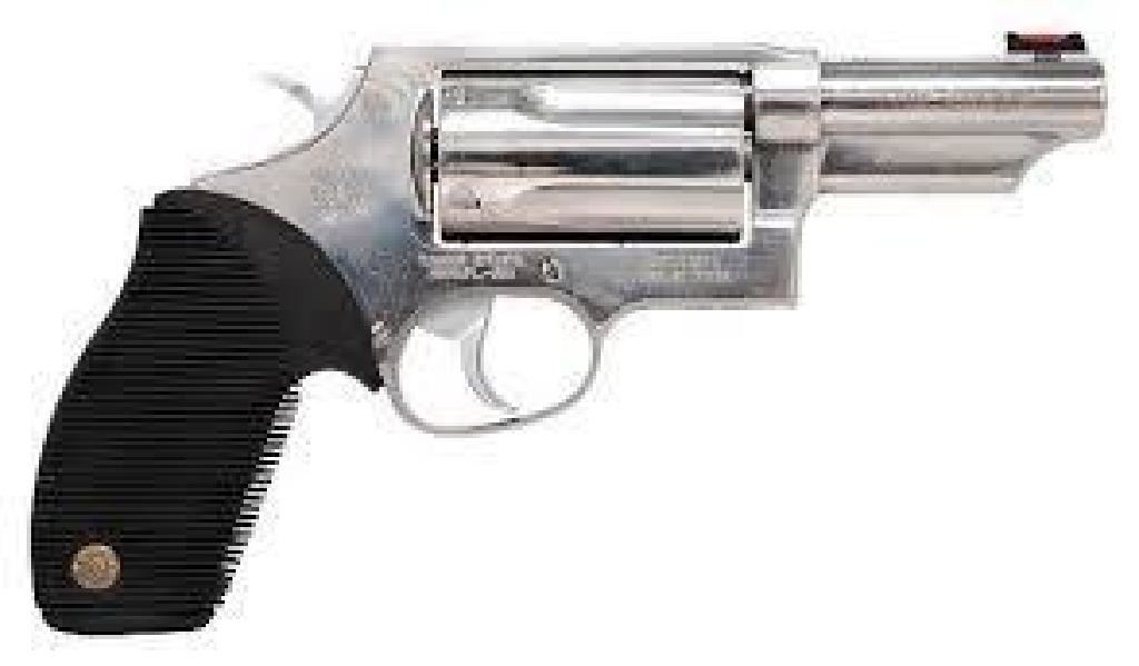 Frame Description:Polished Stainless Type:Revolver Action:Single/Double Caliber:410/45 Colt (LC) Barrel Length:3.0" Capacity:5 Hammer Style:Spurred Grips:Ribber Overlay Sights:Fiber Optic Weight:29 oz Frame Size:Compact Cylinder Finish:Polished Stainless Steel Barrel Finish:Polished Stainless OAL:10"