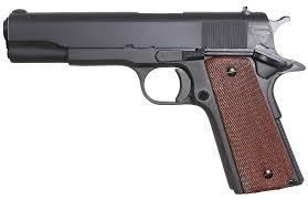 Mfr Items:Taylors and Company Frame Finish:Blued Type:Pistol Action:Single Caliber:45 Automatic Colt Pistol (ACP) Barrel Length:5.0" Capacity:7+1 Safety:Manual Thumb/Grip Grips:Walnut Sights:Fixed Front, Dovetail Rear Weight:39.5 oz Slide Description:Blued