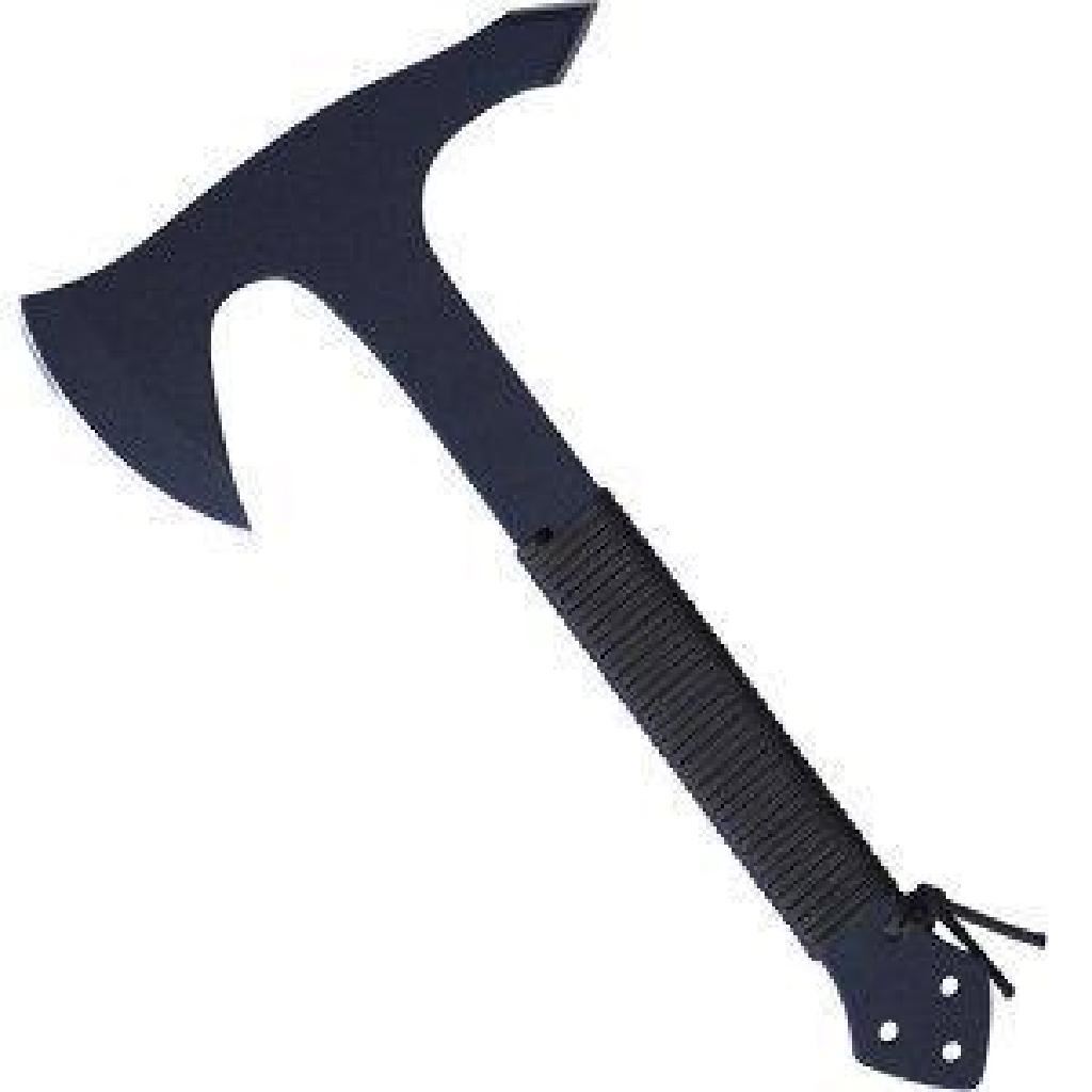 Short Description Tomahawk Axe, Paracord Wrapped Handle, Leather Sheath Long Description Features a 4.00 in. 1075 high carbon steel axe head with a paracord wrapped handle. Comes complete with a leather sheath. Features Blade length: 4.00 in. Blade material: 1075 high carbon Handle material: paracord wrapped Features: leather sheath