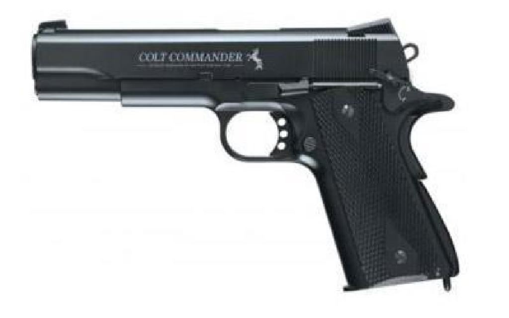 Product Specifications UPC Code: 723364540288 Manufacturer: RWS/Umarex Model: Commander Model: Colt Type: Air Pistol Caliber: 177PEL Feet per Second: 325 Barrel Length: 4.5" Finish/Color: Black Grips/Stock: Polymer Frame Description: BLOWBACK Action Accessories: Drop-Free Mag Capacity: 19Rd Manufacturer Part #: 2254028