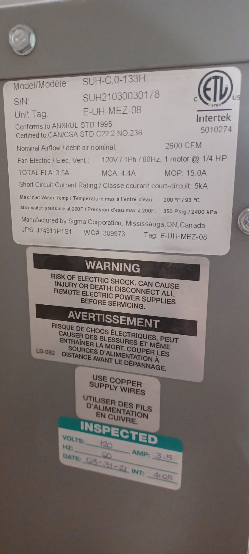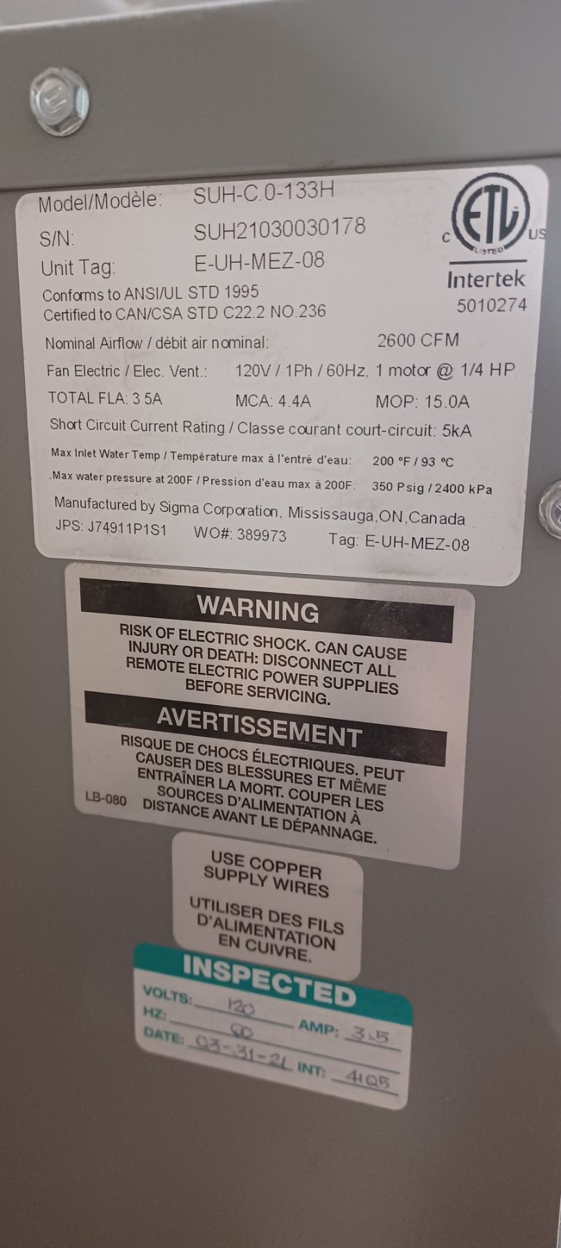 NEW UNIT HEATER C/W LOUVERES, FAN AND THERMOSTATE 37"X 24"X10"