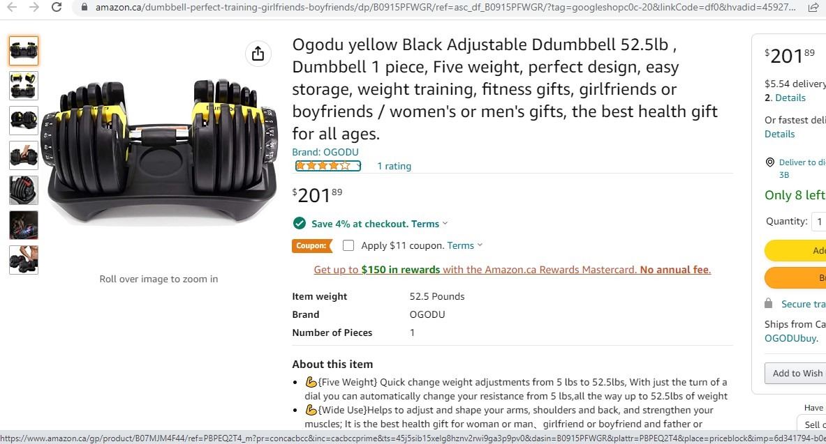 DUMBBELL, YELLOW/BLACK, TESTED, COMES WITH BASE, HEAVY DUTY, AMZ SES