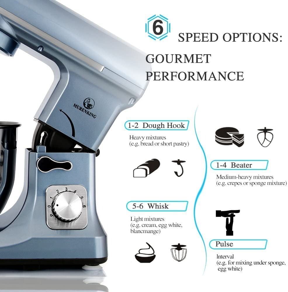 DOUBLE HOOKS, 500W, 5QT BOWL, 6 SPEED WITH TILT HEAD, ELECTRIC, SILVER/BLUE, TESTED, ALL PARTS CONFIRMED, AMZ SES