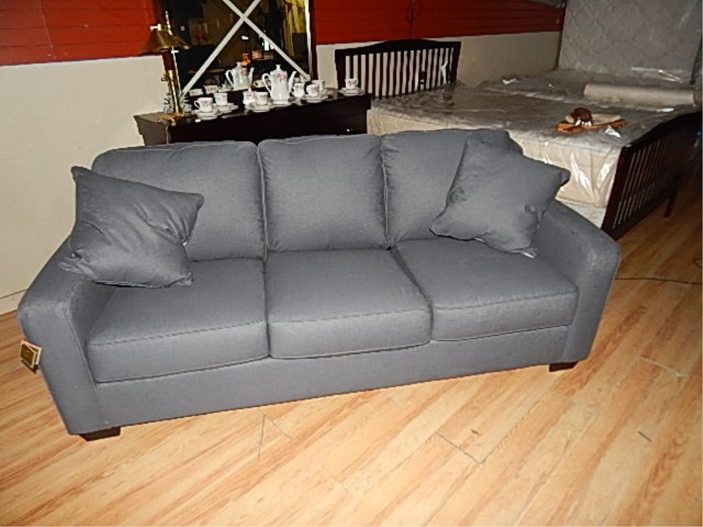 NEW UPHOLSTERED COUCH - SMOKY BLUE GREY WITH ACCENT CUSIONS