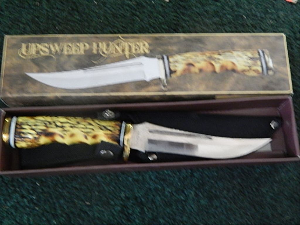 NEW UPSWEEP HUNTER KNIFE - OVERALL 9.5", STAG STYLE HANDLE WITH SHEATH - 210914
