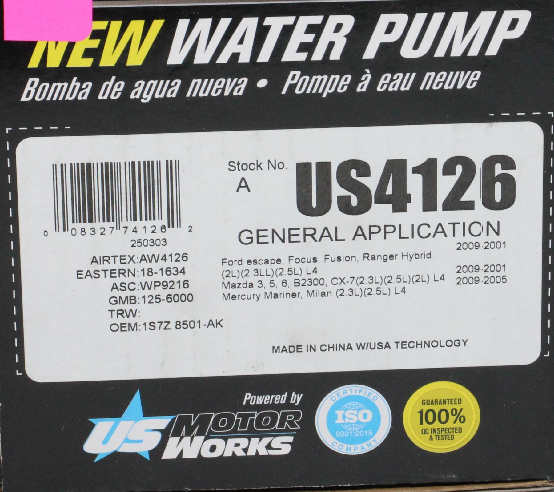NEW USMW WATER PUMP INFO IN PHOTO #US4126