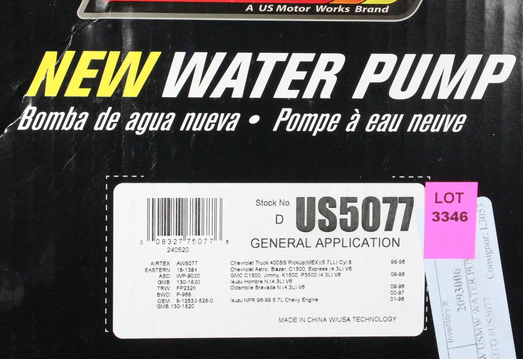 NEW USMW WATER PUMP INFO IN PHOTO #US5077