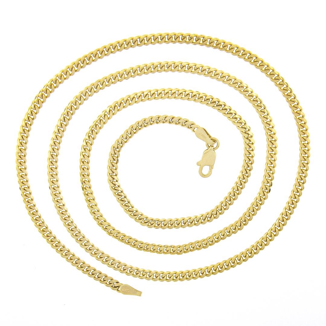 A new solid 14k yellow gold curb link necklace. It weighs a total of 12.70 grams, measures 2.8mm wide, and measures 22 inches in length.