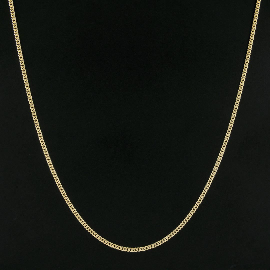 A new solid 14k yellow gold curb link necklace. It weighs a total of 13.9 grams, measures 2.8mm wide, and measures 24 inches in length.