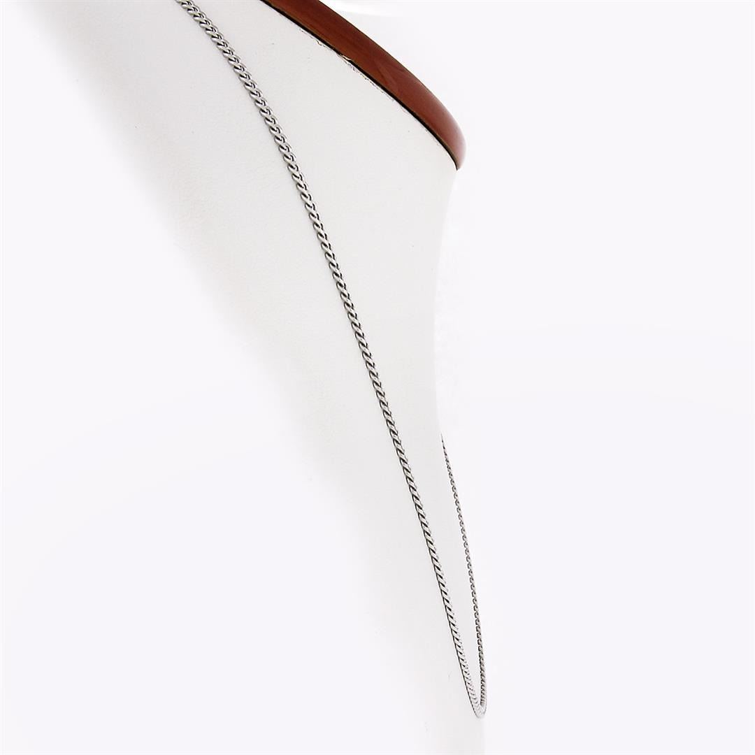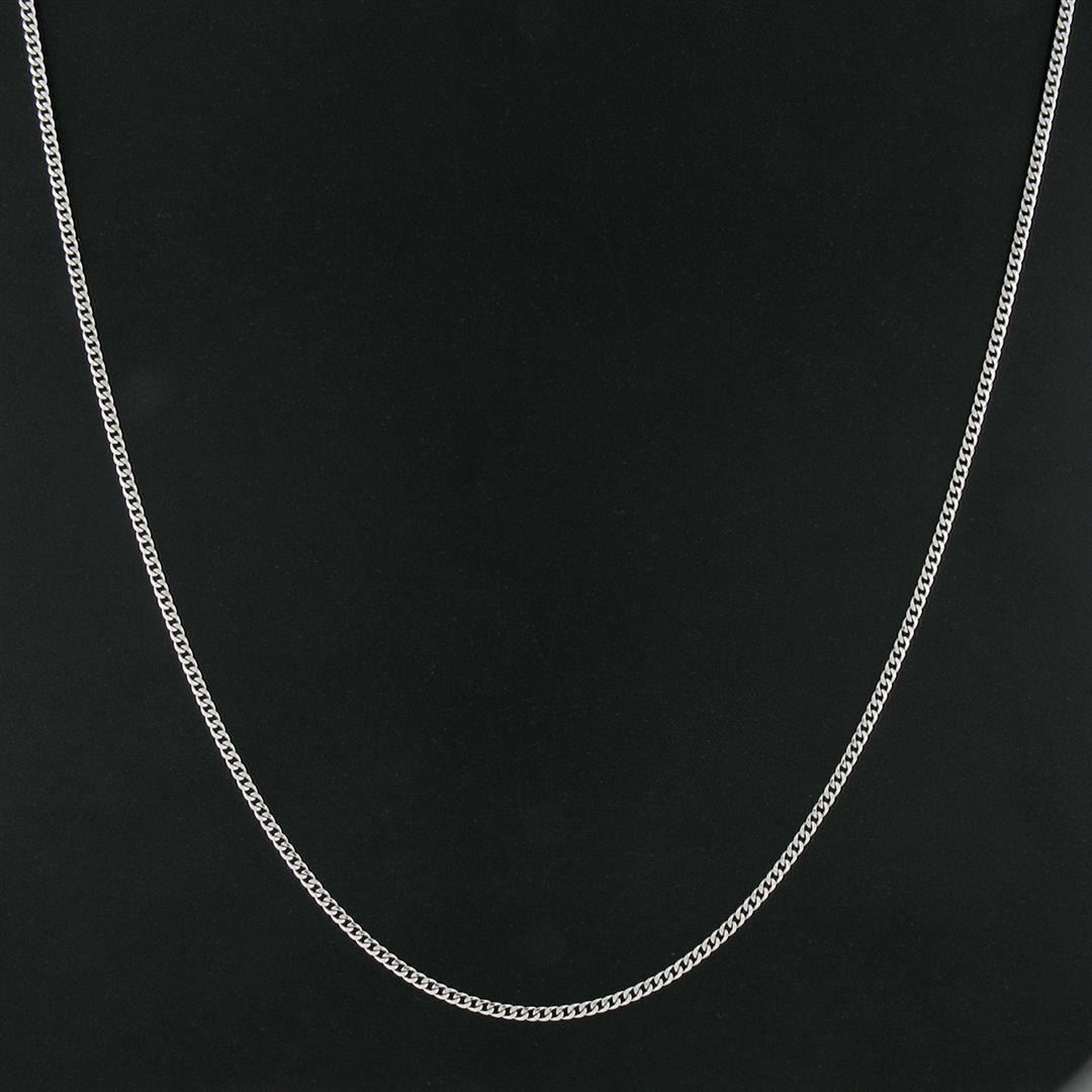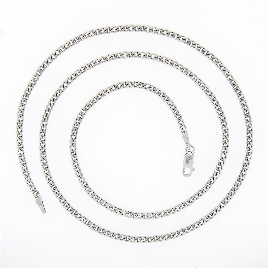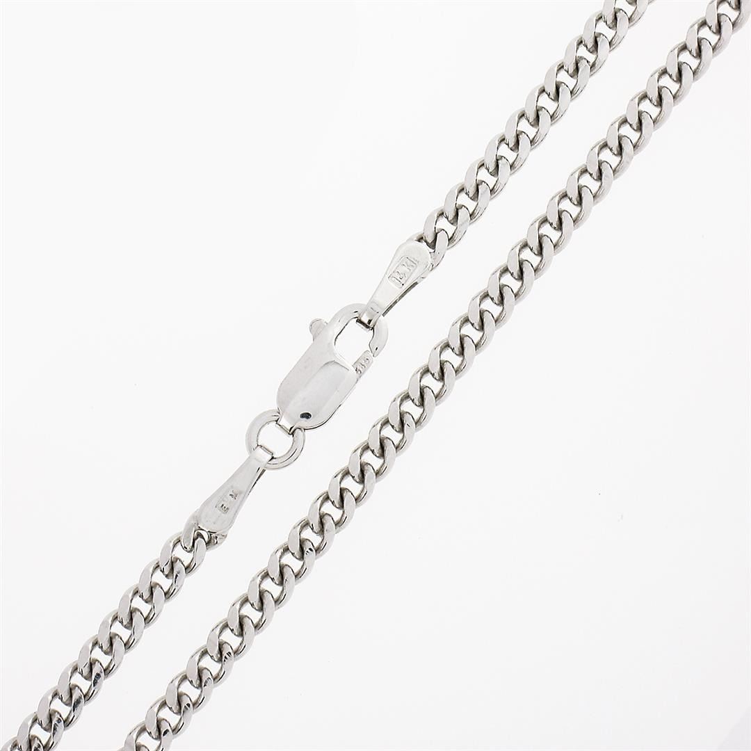 A new solid 14k white gold Miami Cuban curb link chain. It weighs a total of 7.0 grams, measures 2.3mm wide, and measures 18 inches in length.
