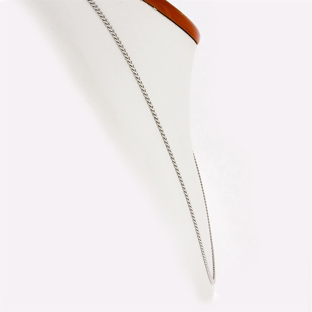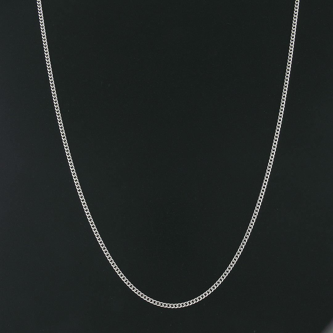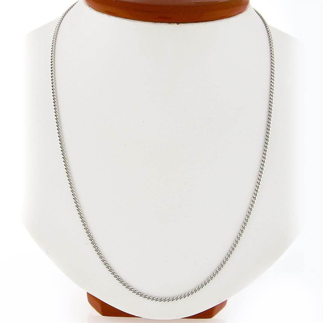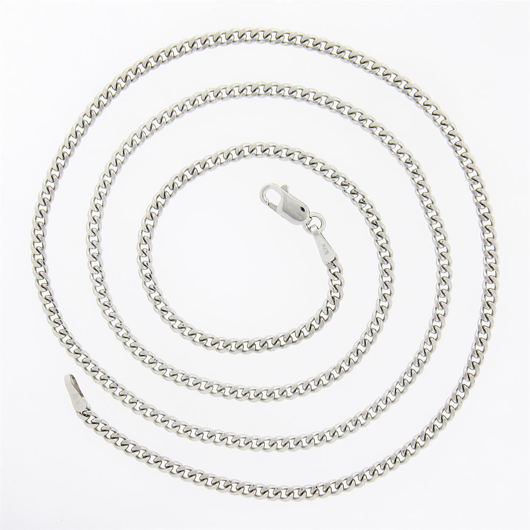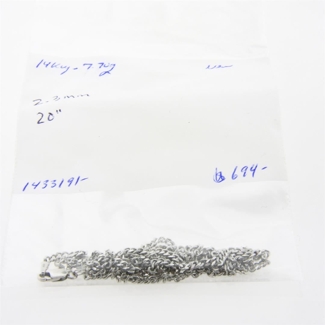 A new solid 14k white gold chain necklace. It weighs a total of 7.70 grams, measures 2.3mm wide, and measures 20 inches in length.