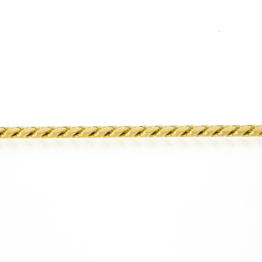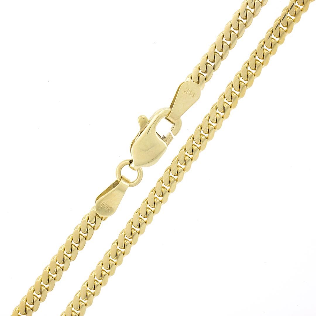A solid 14k yellow gold link necklace. It weighs a total 12.4 grams, measures 2.6mm wide, and measures 24 inches in length.
