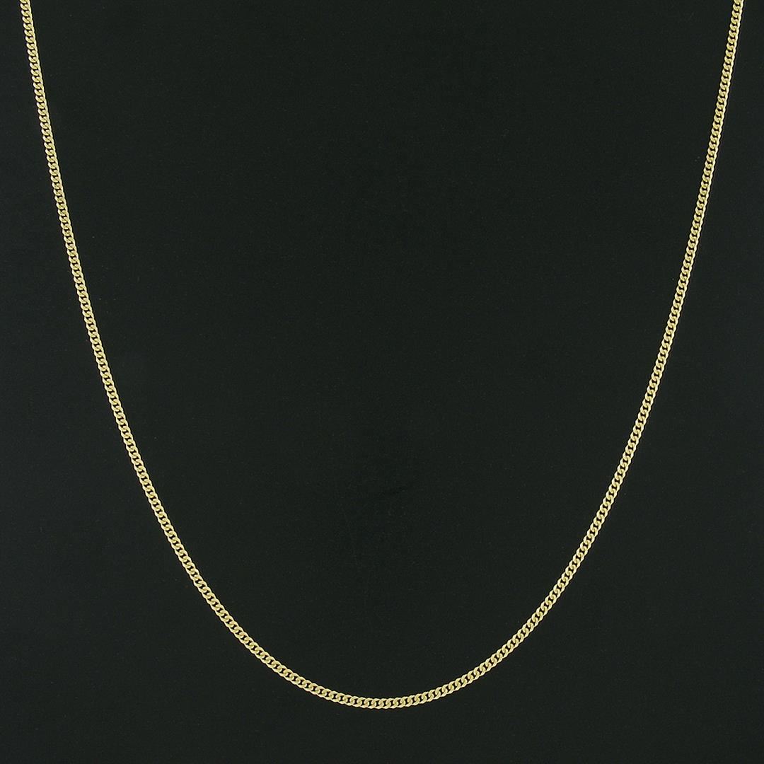 A new solid 14k yellow gold curb link chain necklace. It weighs a total of 7.65 grams, measures 2.15mm wide, and measures 22 inches in length.
