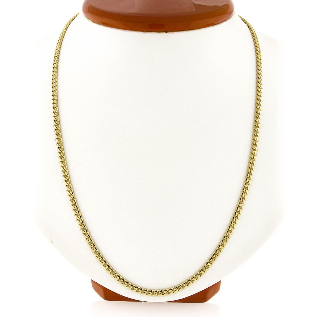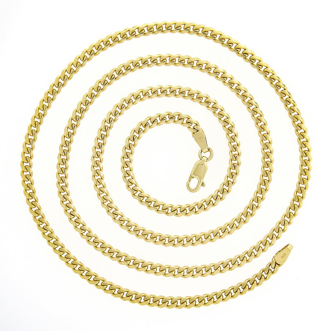 A new solid 14k yellow gold cuban curb link chain necklace. It weighs a total of 20.83 grams, measures 3.5mm wide, and measures 24 inches in length.