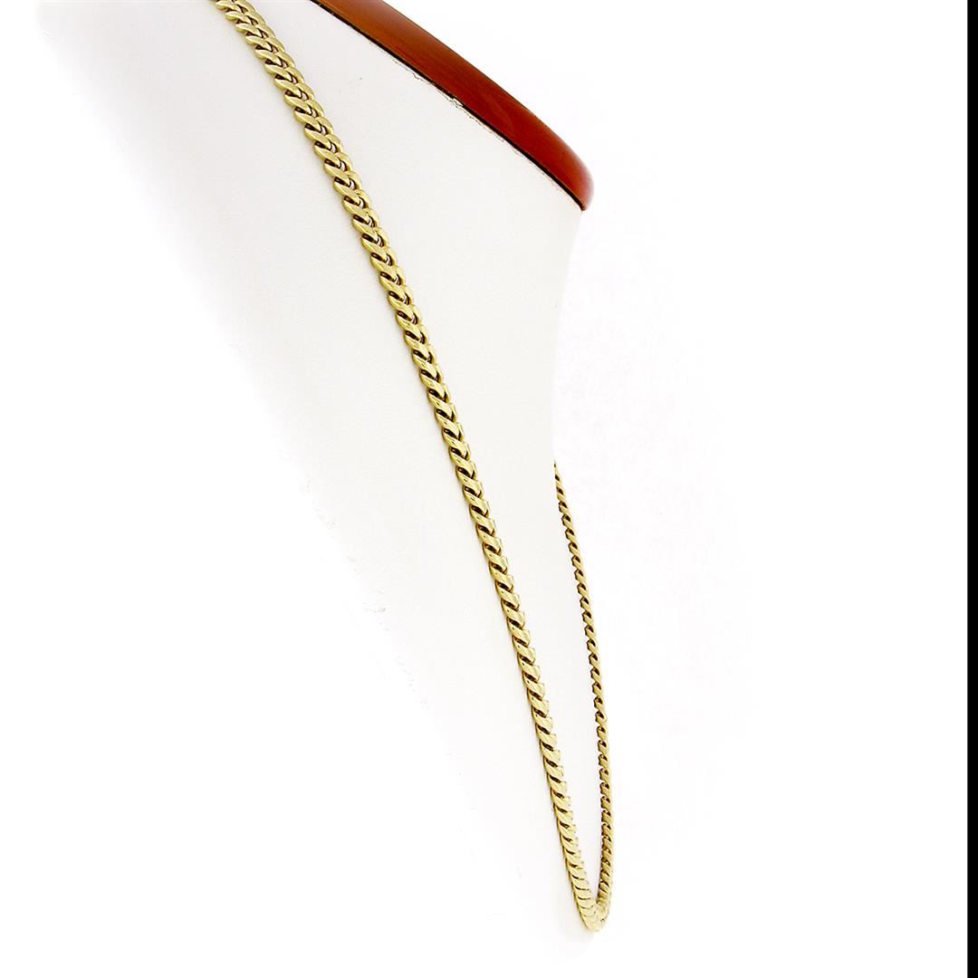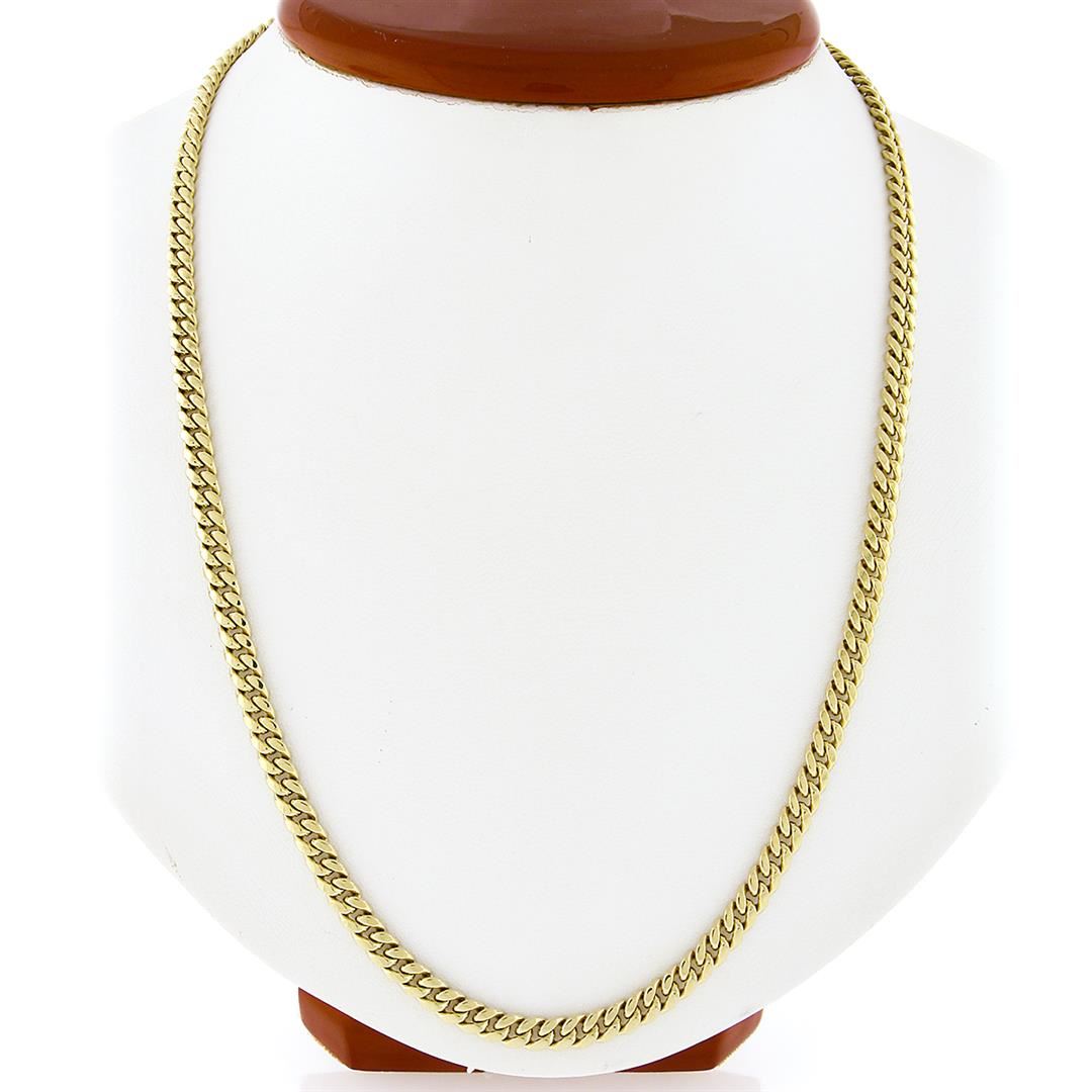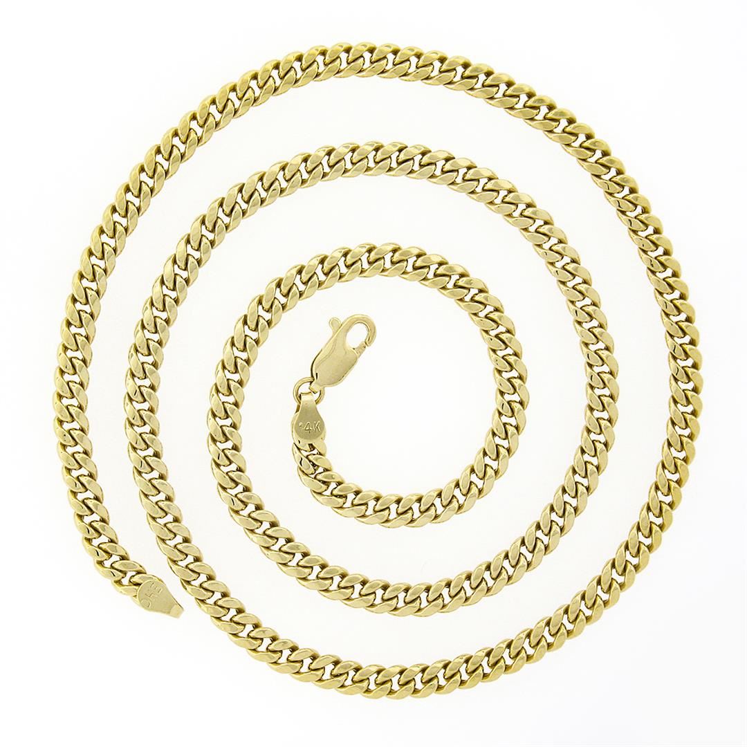 A new solid 14k yellow gold Cuban curb link necklace. It weighs a total of 12 grams, measures 4.4mm wide, and measures 22 inches in length.