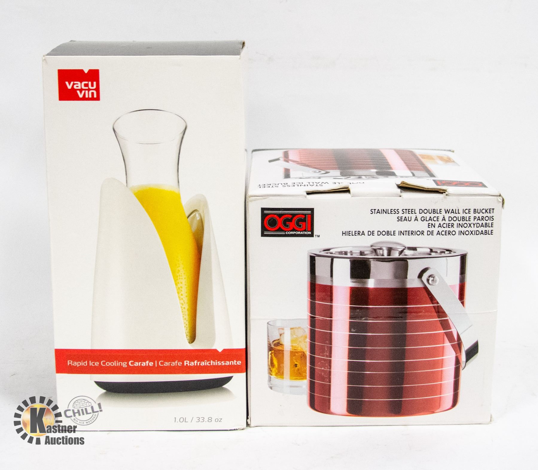 COOLING CARAFE 1.0 LITRE W/NEW OGGI DOUBLE WALL ICE BUCKET STAINLESS STEEL **ALL ITEMS MUST BE REMOVED BY 5PM SATURDAY, MAY 20TH 2023. ALL REMAINING ITEMS WILL BE SUBJECT TO A $6.00 PER DAY STORAGE CHARGE. ANY ITEMS REMAINING AFTER MONDAY, JUNE 5TH, 2023 WILL BE CONSIDERED FORFEITED. NO REFUNDS WILL BE ISSUED FOR FORFEITED ITEMS. TO SCHEDULE A PICK UP APPOINTMENT CLICK HERE