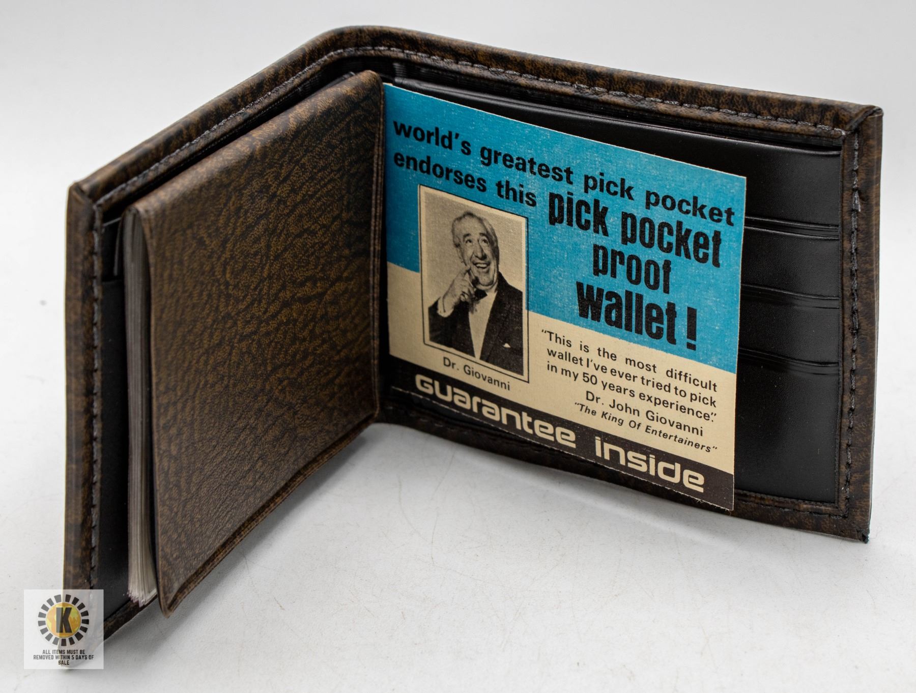 PICK POCKET PROOF WALLET IN ORIGINAL BOX **ALL ITEMS MUST BE REMOVED BY 5PM SATURDAY, APRIL 26TH 2025. ALL REMAINING ITEMS WILL BE SUBJECT TO A $6.00 PER DAY STORAGE CHARGE. ANY ITEMS REMAINING AFTER MONDAY, MAY 12TH 2025 WILL BE CONSIDERED FORFEITED. NO REFUNDS WILL BE ISSUED FOR FORFEITED ITEMS. TO SCHEDULE A PICK UP APPOINTMENT CLICK HERE