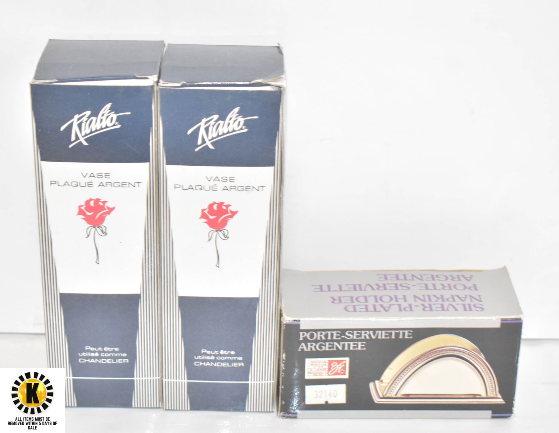 NAPKIN HOLDER HEAVY NEW IN BOX OLD STOCK SILVER PLATED