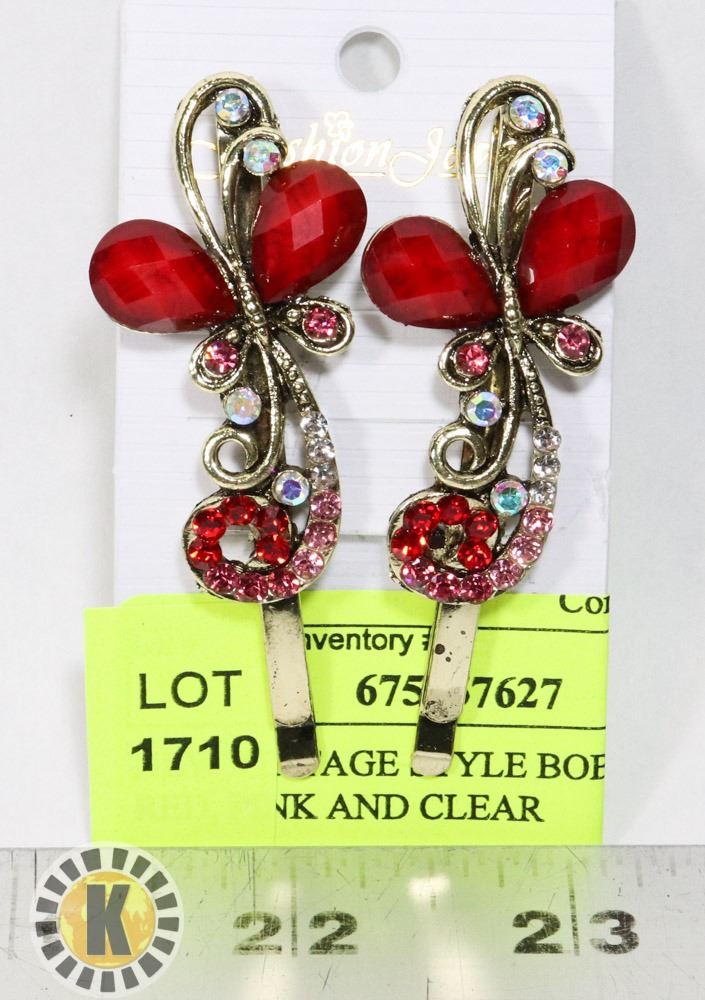 NEW VINTAGE STYLE BOBBY PINS RED, PINK AND CLEAR