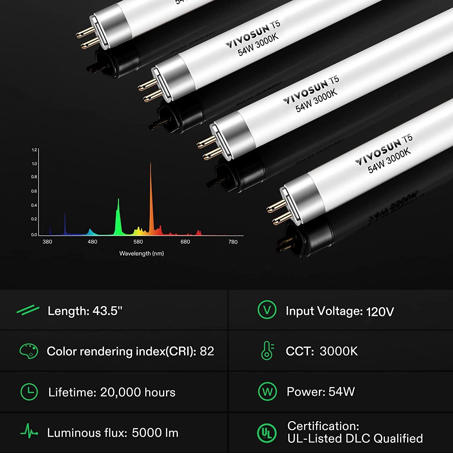 NEW VIVOSUN 5 PACK OF T5 GROW LIGHT BULBS, 4FT