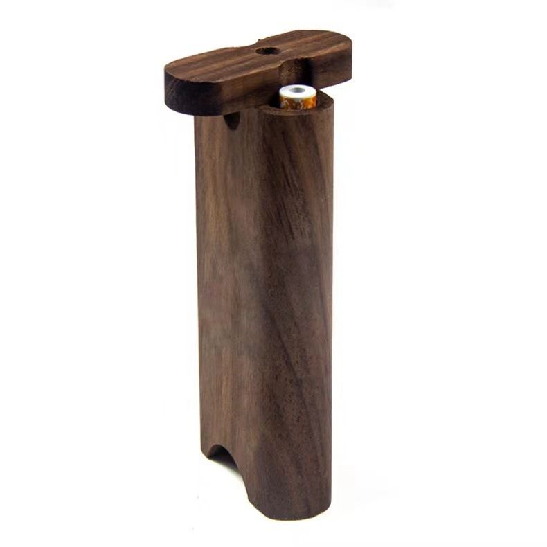 WOODEN WOOD DUGOUT ONE HITTER, BUILT-IN MAGNETIC ROD CLEANING TOOL.