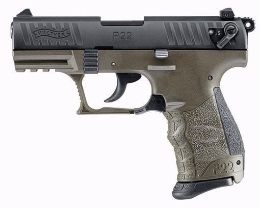 Manufacturer: Walther Model: P22 Action: Semi-automatic Type: Double Action Only Size: Compact Caliber: 22LR Barrel Length: 3.4" Frame/Material: Polymer Finish/Color: Mil Green Capacity: 10Rd Accessories: 1 Mag Sights: Adjustable Sights