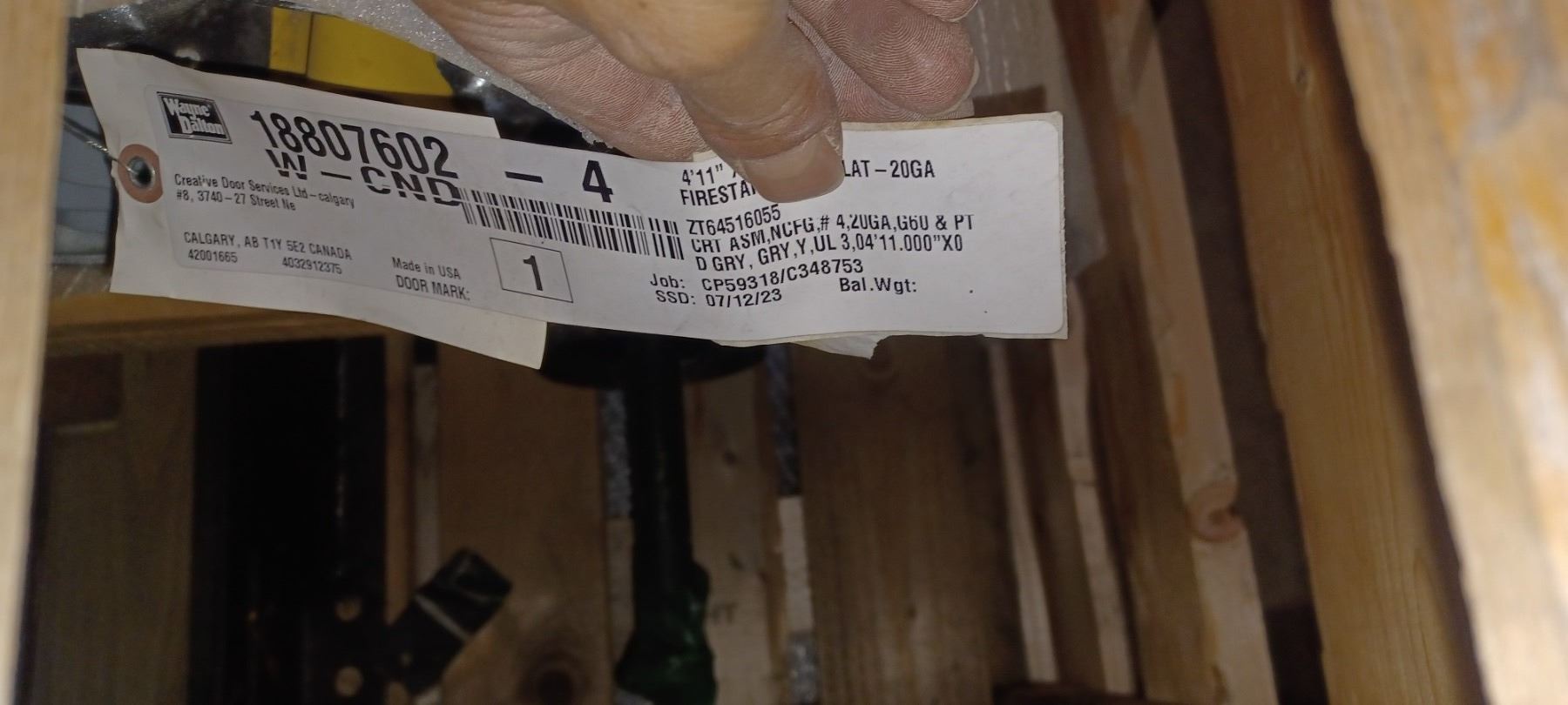 NEW WAYNE DALTON FIRE RATED ROLL UP DOOR C/W HARDWARE 4'11"W X 7'H MFG 12/23 INVOICE COST $13,000 STILL IN CRATE